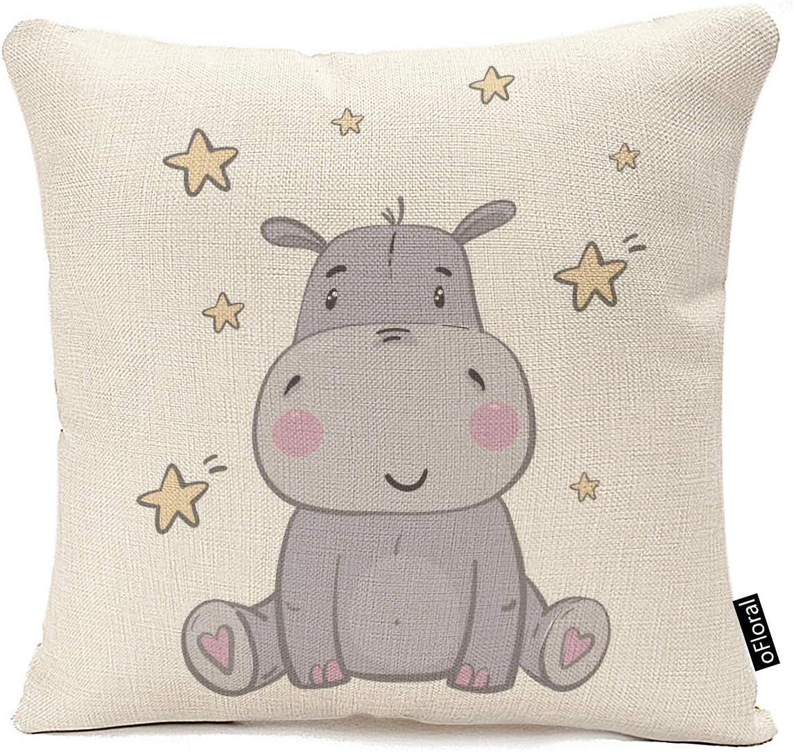 Amazon Com Ofloral Throw Pillow Covers Pink Africa Cute Hippo For Children Animal Star Decorative Pillow Case For Home Couch Bedroom Car 18x 18 Inch Cotton Linen Pillowcase Home Kitchen