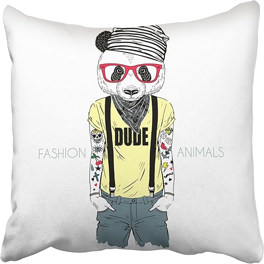 Amazon Com Emvency Decorative Throw Pillow Covers Cases Bear Tattooed Panda Hipster Boy Dressed Up In Cool Furry Animals Tattoo Funky Freak Man Glasses 20x20 Inches Pillowcases Case Cover Cushion Two Sided Home